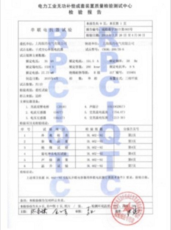 高壓串聯電抗器檢測報告